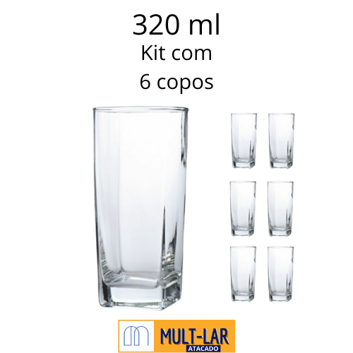 - Kit copo de vidro 320 ml com 6; - Desaine inovador; - Venda no ATACADO. |